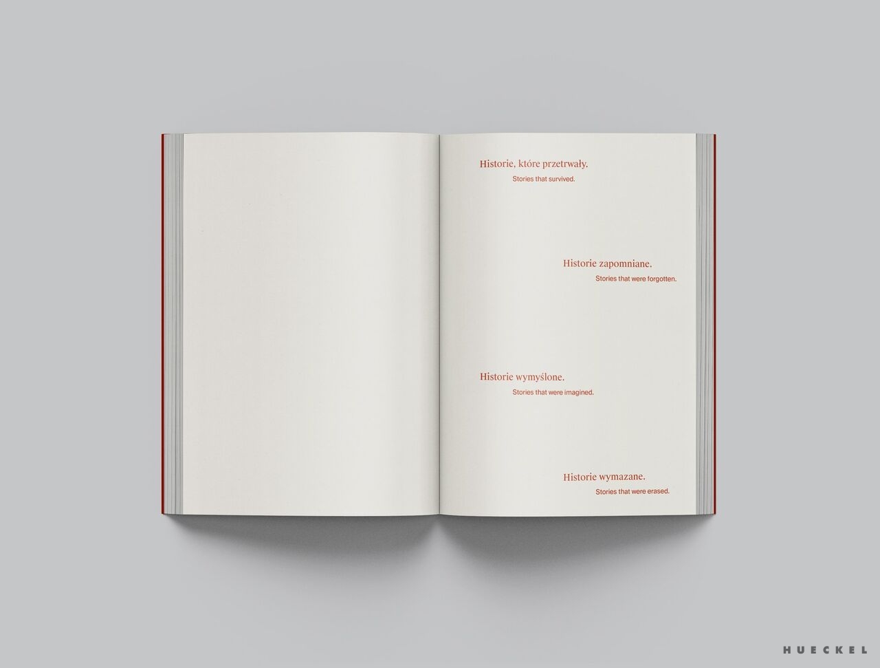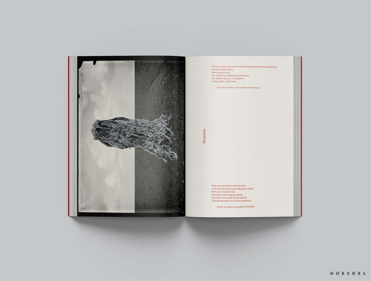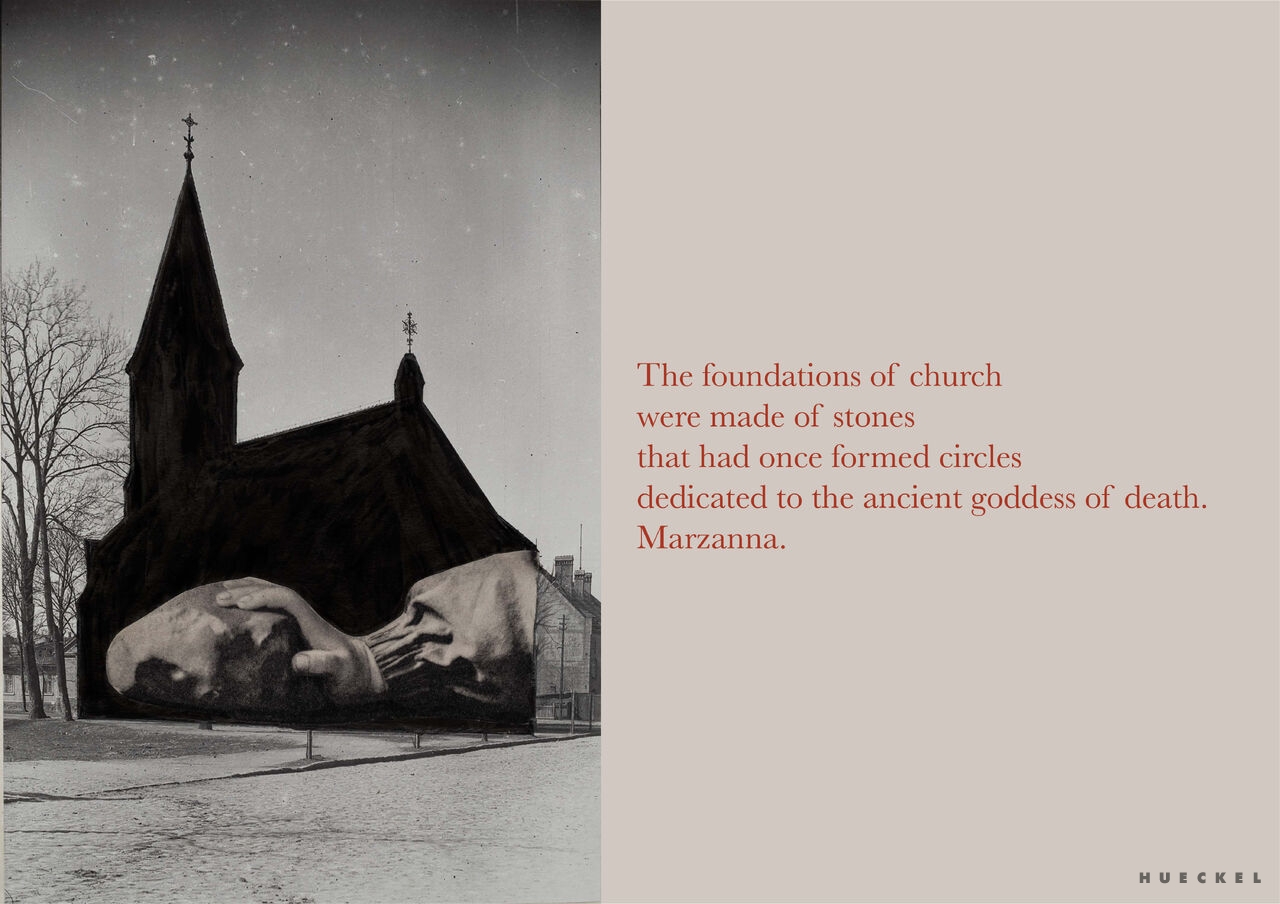 Hueckel nie oddziela historii od mitu — skleja je w jedną narrację, w której to, co oficjalne, miesza się z tym, co zapomniane i wyparte. Projekt stanowi próbę nowego odczytania lokalnych tożsamości oraz refleksję nad mechanizmami, które kształtują zbiorową pamięć.”