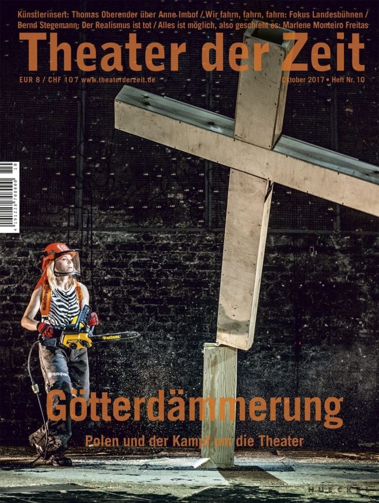 Fotografie ze spektaklu "Klątwa" w reż. Oliviera Frilica na okładce niemieckiego pisma "Theater der Zeit"