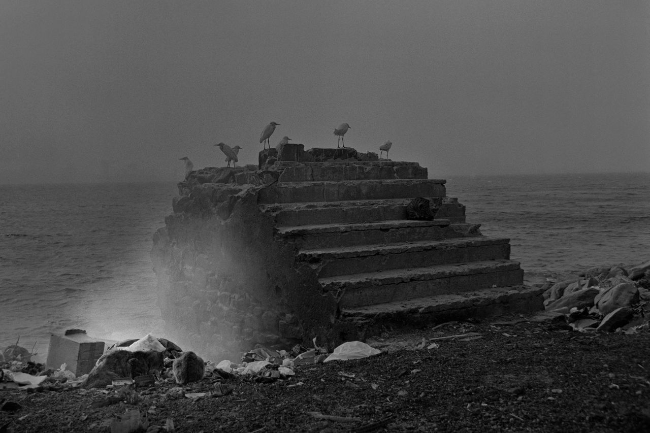 “And hence one picture to begin with: stairs on the shore, there are birds sitting on it; nobody knows how come the stairs are there, at the waterside, nor what they were a part of before. Stairs which lead nowhere and serve no purpose: here is one of those mysterious objects in which the series abounds..