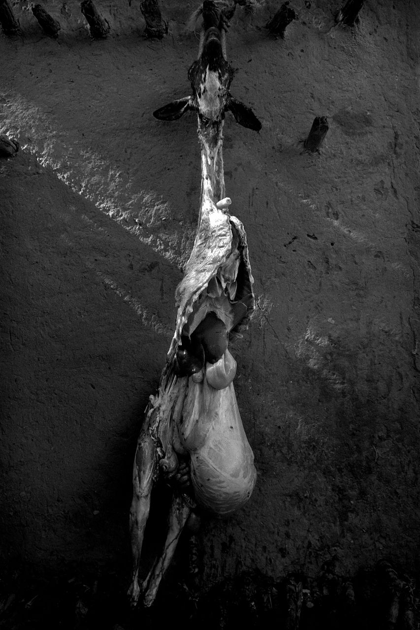 “Octopuses like entrails torn out of colossal belly, crumpled and pallid, skinned bodies, animal carcasses, and the decapitated head of a camel, its eyes half-closed, as if in a serene dream, and only the bloody tear remind one that it is no picture of repose but a head at the butcher’s. Besides, the severed heads are plentiful, as are the bodies consigned for consumption, and others collected for mystical purposes; the land of the spirit, Anima, is a land of cadavers. What are all those bodies for, whole and in pieces? The meat trade is understandable, nothing cryptic about it (apart from the mystery of communing with something that was a body, a house); but why the heads of birds, why the dried bat, the monkey heads and long spines, why the crocodile heads and the threadbare pelts, what for, who gathers it all?