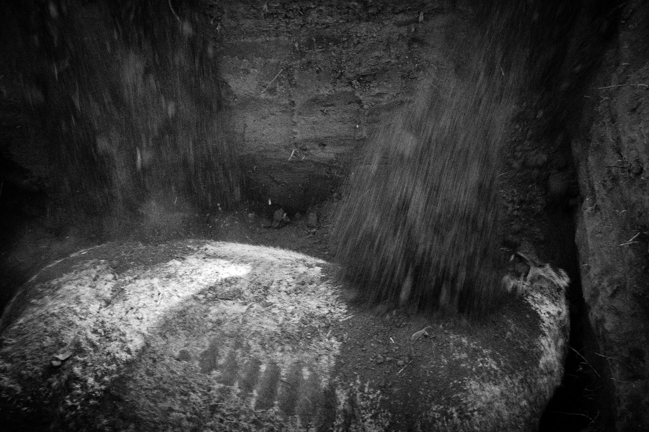 The attempt to enter the invisible dimension of spirituality and immortality occurs through an exploration of images of emptiness and abandoned, neglected and ruined sites interwoven with shots of organic structures, decaying animal matter and objects of a sacred nature. “This documentation of decay and death is also an exploration of magical practices in which death is inseparably intertwined with life (…) Death is not any end, nor a breach, it is natural element of life. It's just that life here is not regarded as something assigned to individuals, but as Zoe – an impersonal or rather inhuman force."- wrote Izabela Kowalczyk.