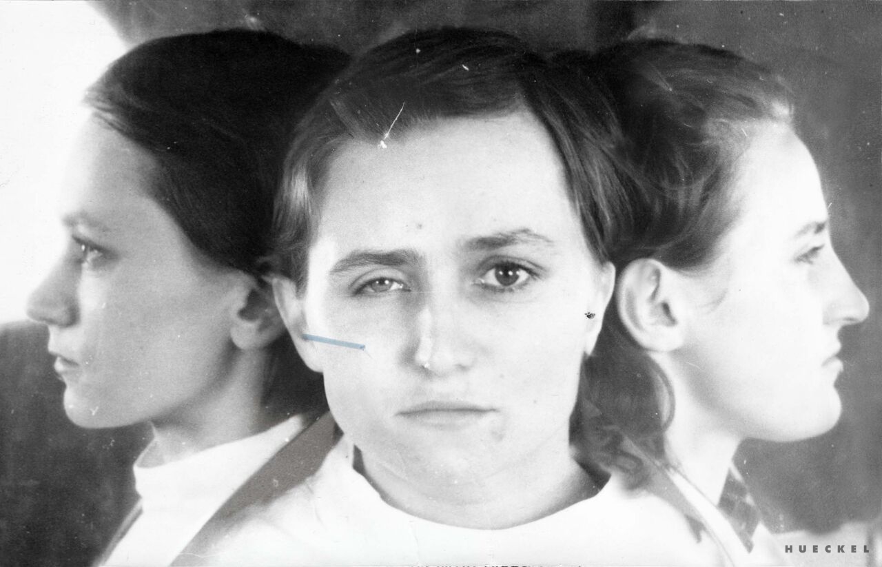 The women in the photographs presented by Magda Hueckel also never existed. By chance, their faces were collected in the same medical archive. The artist introduces her own image into these photographs. The faces, manipulated, have become hybrids woven from many separate people, experiences and images - like the ideals of beauty created by men and by women for men. Except that they are not classically beautiful. They defy expectations. Formed from collective experience, they are penetrating and strong. Peace and the intensity of existence emanate from them. They are a symbol of female experience and female strength – displaced in culture since the beginning of time – whose roots find their origin in antiquity.