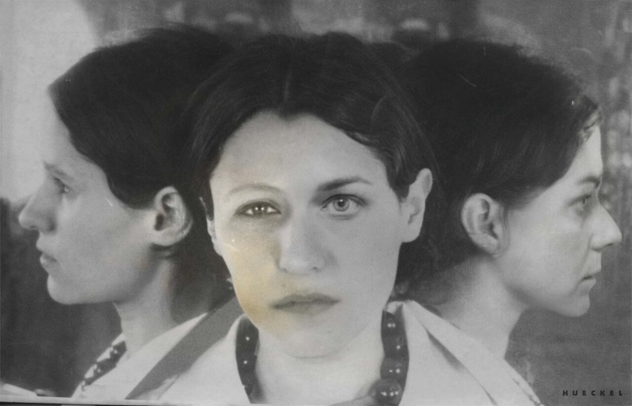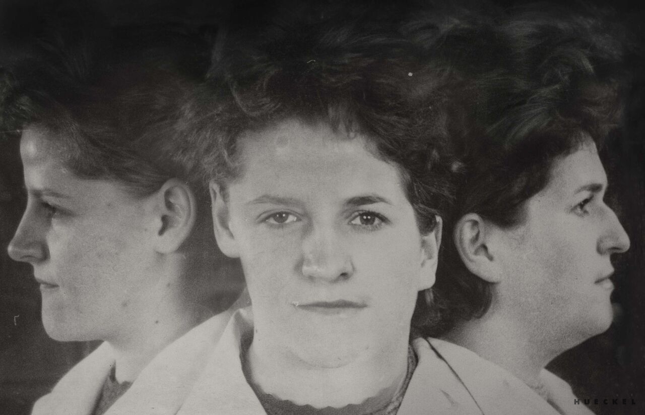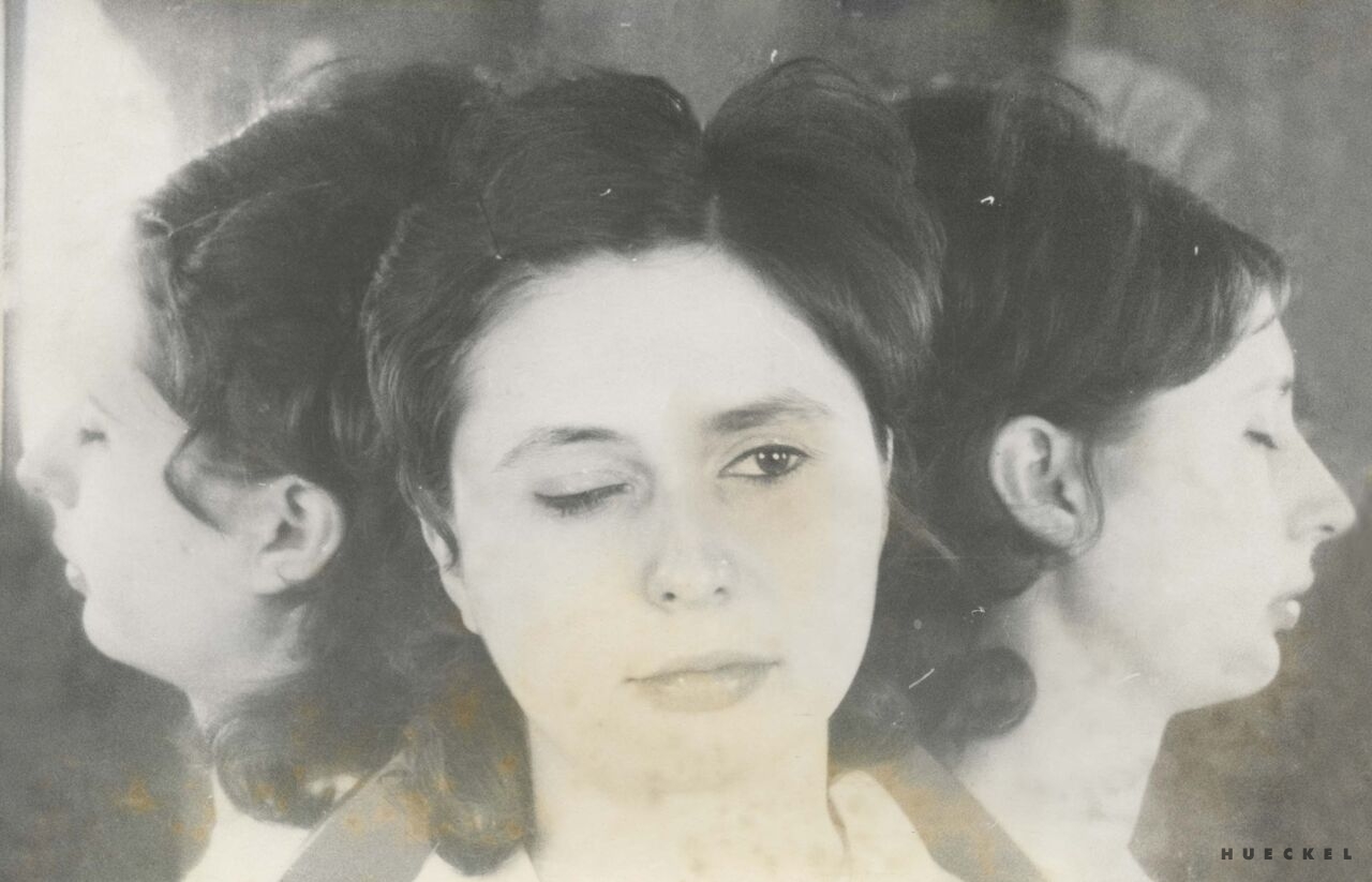 Kobiety na zdjęciach prezentowanych przez Magdę Hueckel utkane zostały z wielu osobnych bytów, doświadczeń i wizerunków. zbioru twarzy, przez przypadek zgromadzonych w jednym archiwum medycznym. powstały hybrydy. jak ideały piękna tworzone przez mężczyzn (i kobiety) dla mężczyzn. Powstałe Menady nie są jednak klasycznie piękne, nie spełniają oczekiwań. Złożone ze zbiorowych doświadczeń, są silne i przenikliwe. Emanuje z nich spokój i intensywność istnienia. Są symbolem doświadczeń kobiecości i kobiecej siły wypieranej od zawsze w kulturze, której źródła sięgają antyku.