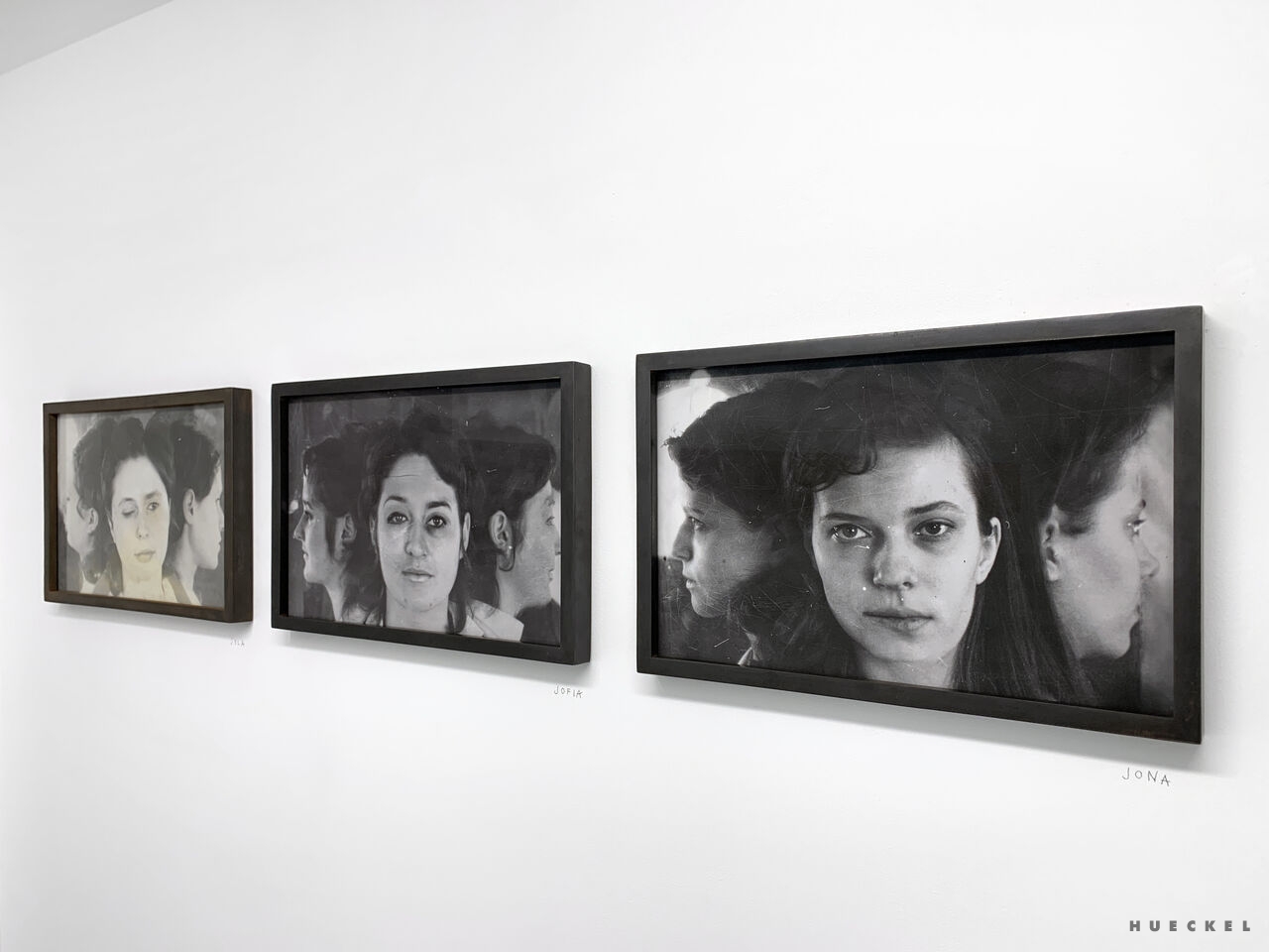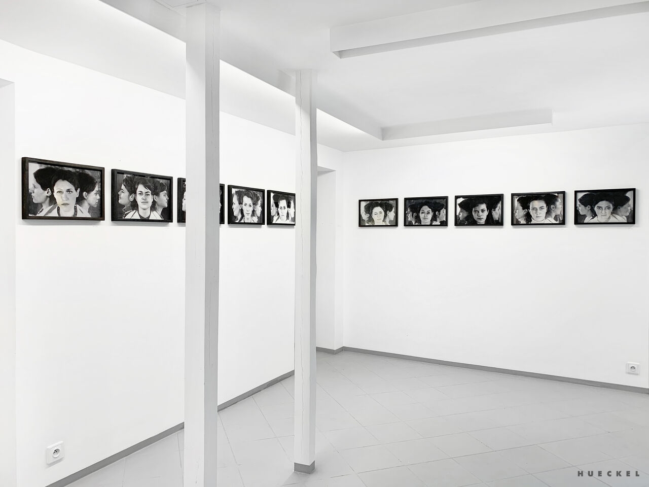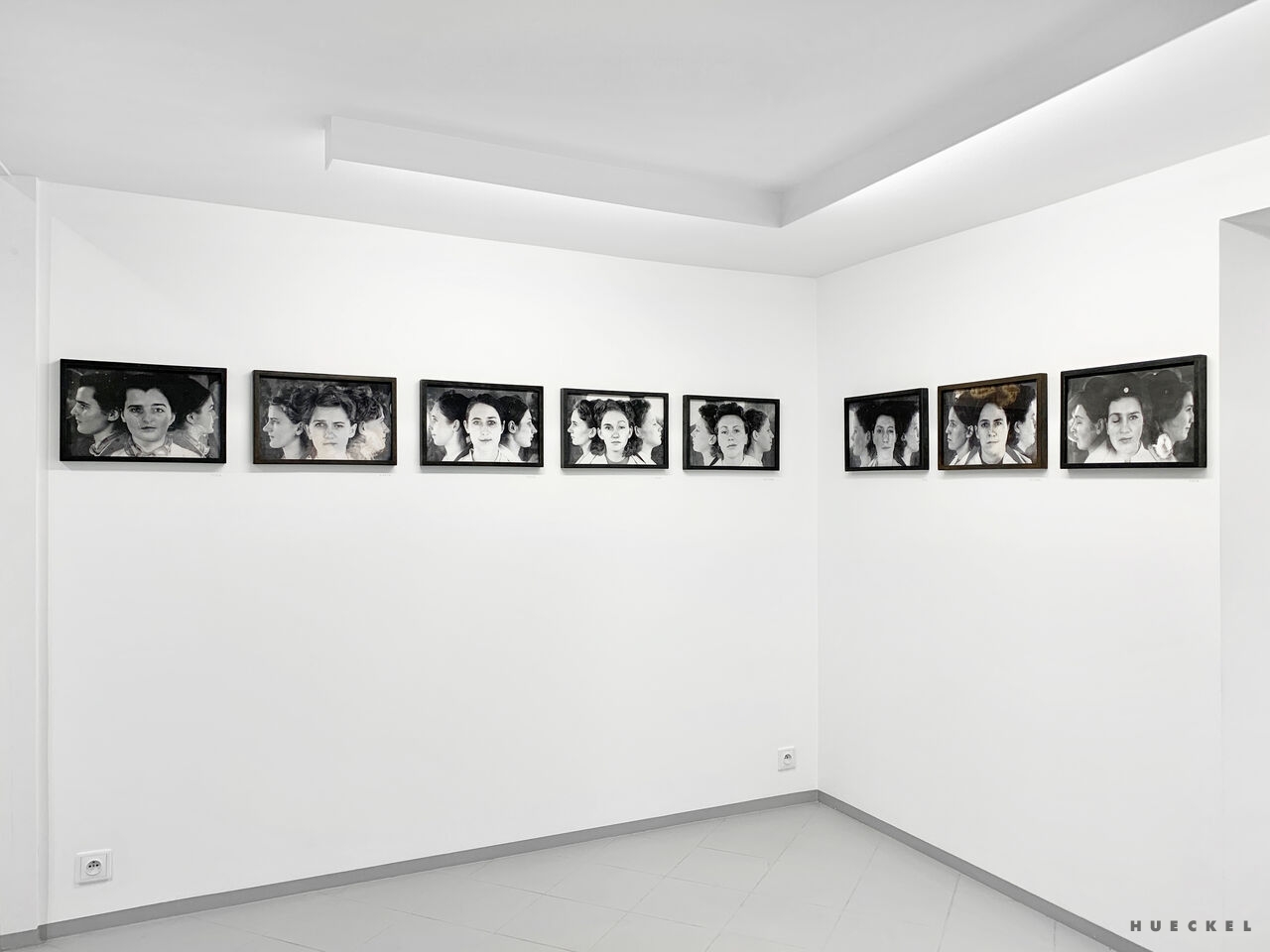 Kobiety na zdjęciach prezentowanych przez Magdę Hueckel utkane zostały z wielu osobnych bytów, doświadczeń i wizerunków. zbioru twarzy, przez przypadek zgromadzonych w jednym archiwum medycznym. powstały hybrydy. jak ideały piękna tworzone przez mężczyzn (i kobiety) dla mężczyzn. Powstałe Menady nie są jednak klasycznie piękne, nie spełniają oczekiwań. Złożone ze zbiorowych doświadczeń, są silne i przenikliwe. Emanuje z nich spokój i intensywność istnienia. Są symbolem doświadczeń kobiecości i kobiecej siły wypieranej od zawsze w kulturze, której źródła sięgają antyku.