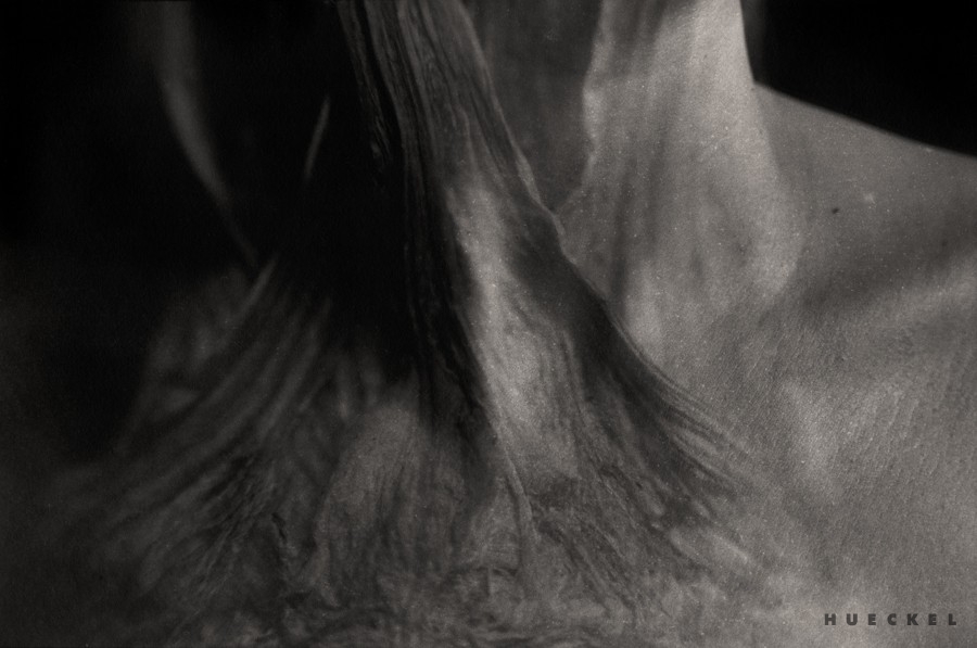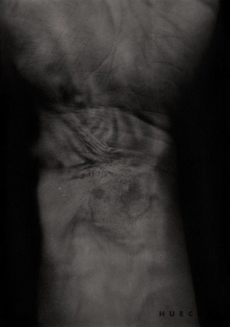 "...Hueckel shows the fear of bodily decomposition quite subtle. In a delicate, almost imperceptible way it comes from the outside, as something alien that may be difficult to familiarize oneself with. However, the time passing by as presented in the pictures is not deprived of meaning, nor is it ownerless – it belongs to EVERYBODY. The pictures of the artist’s own body become an illustration of time passing by in general, which is a straightforward and obvious consequence of life (including the life of the body, whether human or not). We need to emphasize that these works have been created by a young person (she started working on them at the age of twenty-something), who has tackled a subject that is pushed beyond the horizon, and she has attempted to bring it back before our eyes. "